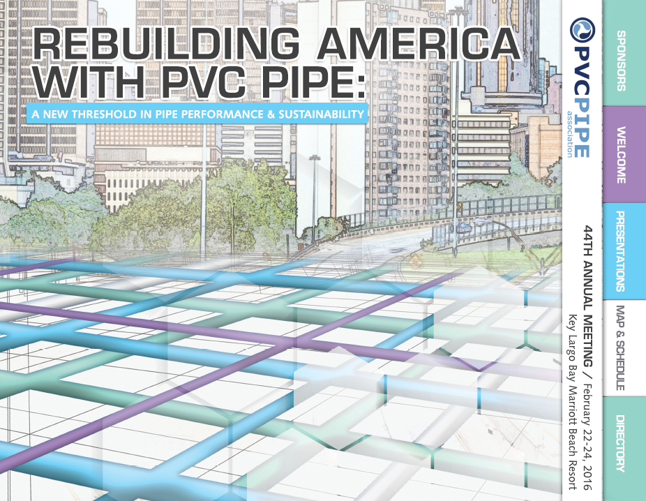 Rebuilding America with PVC Pipe: A New Threshold for Pipe Performance and Sustainability 44th Annual Meeting February 22-24, 2016 Key Largo Bay Marriott Beach Resort Key Largo, FL